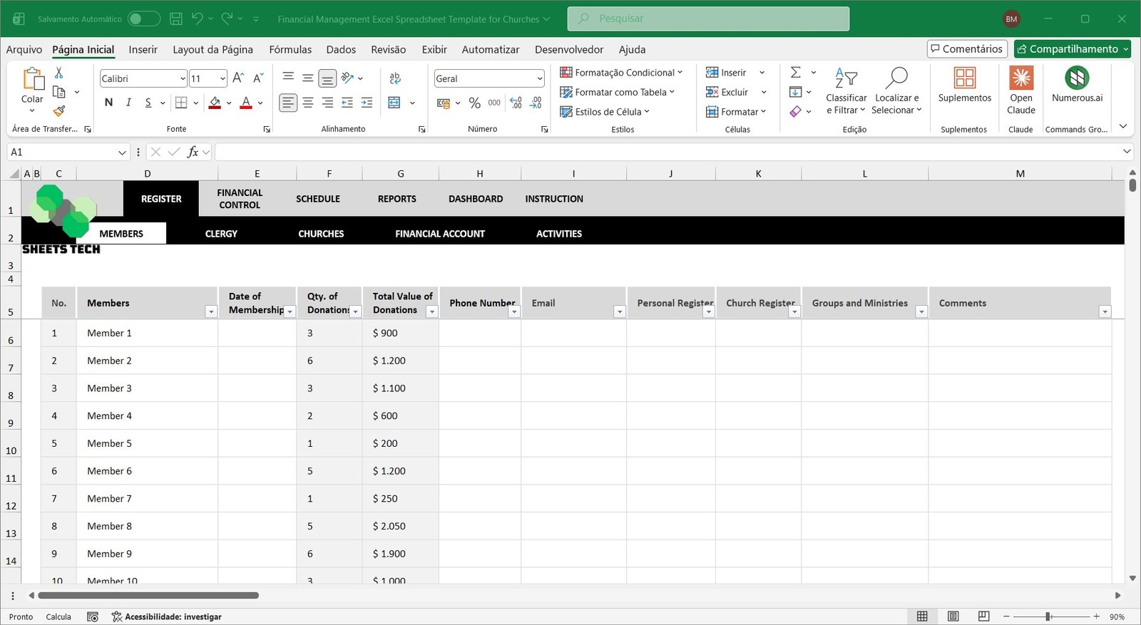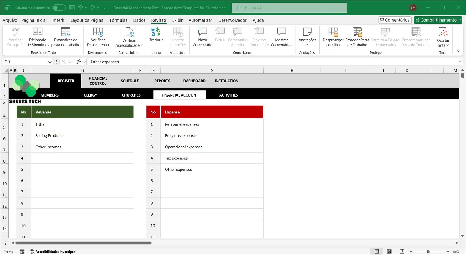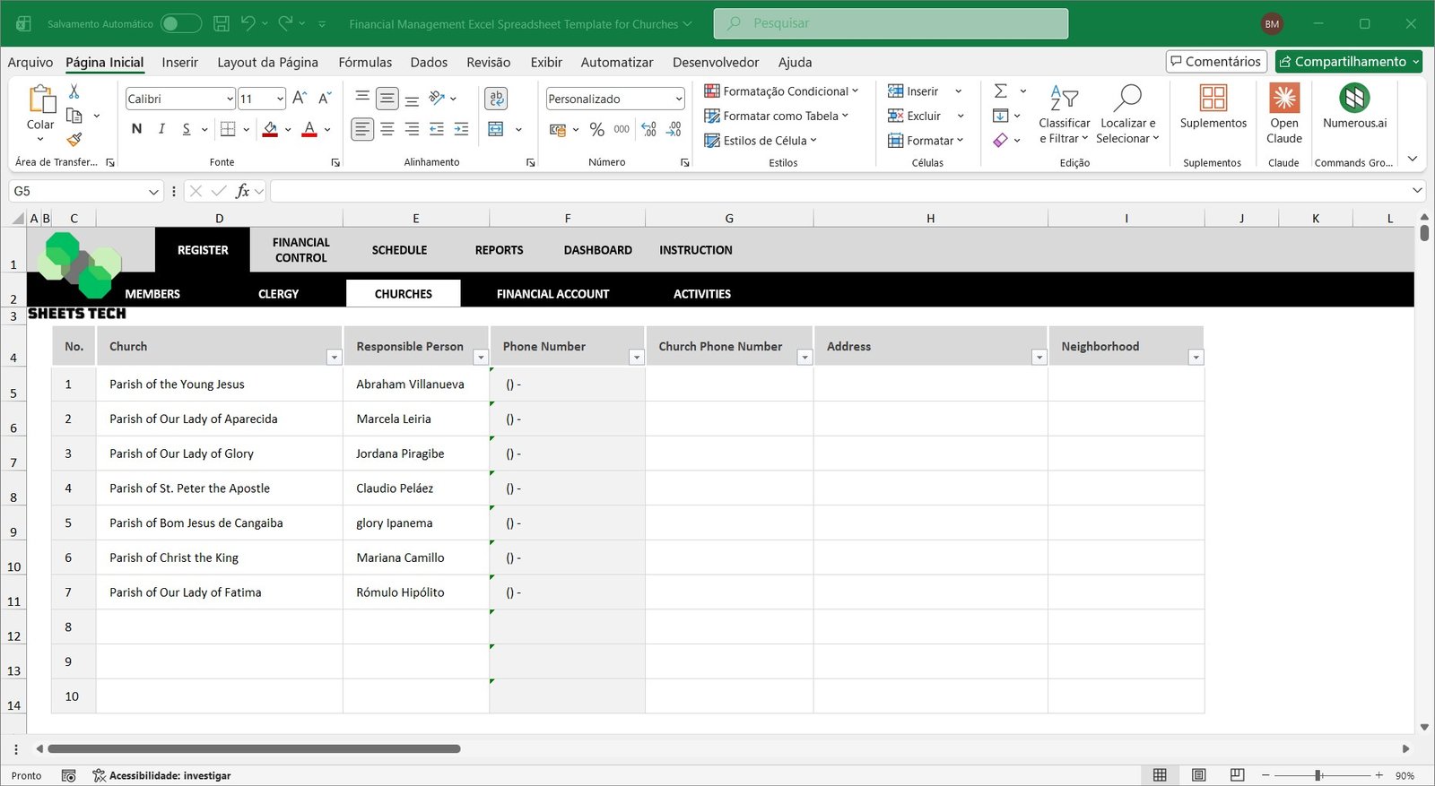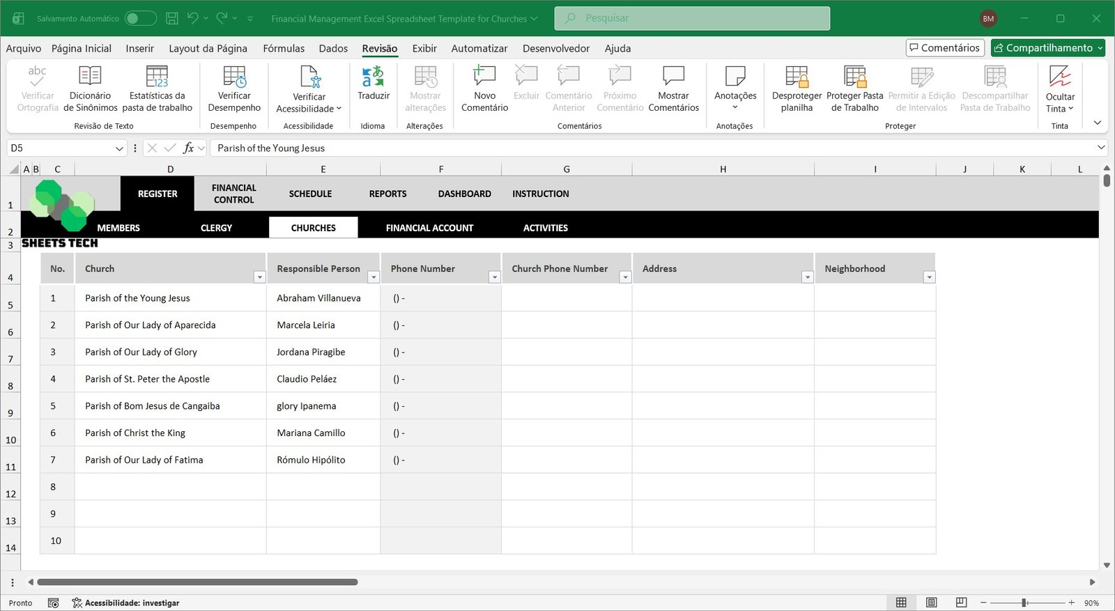 Church Financial Management Excel Spreadsheet Template