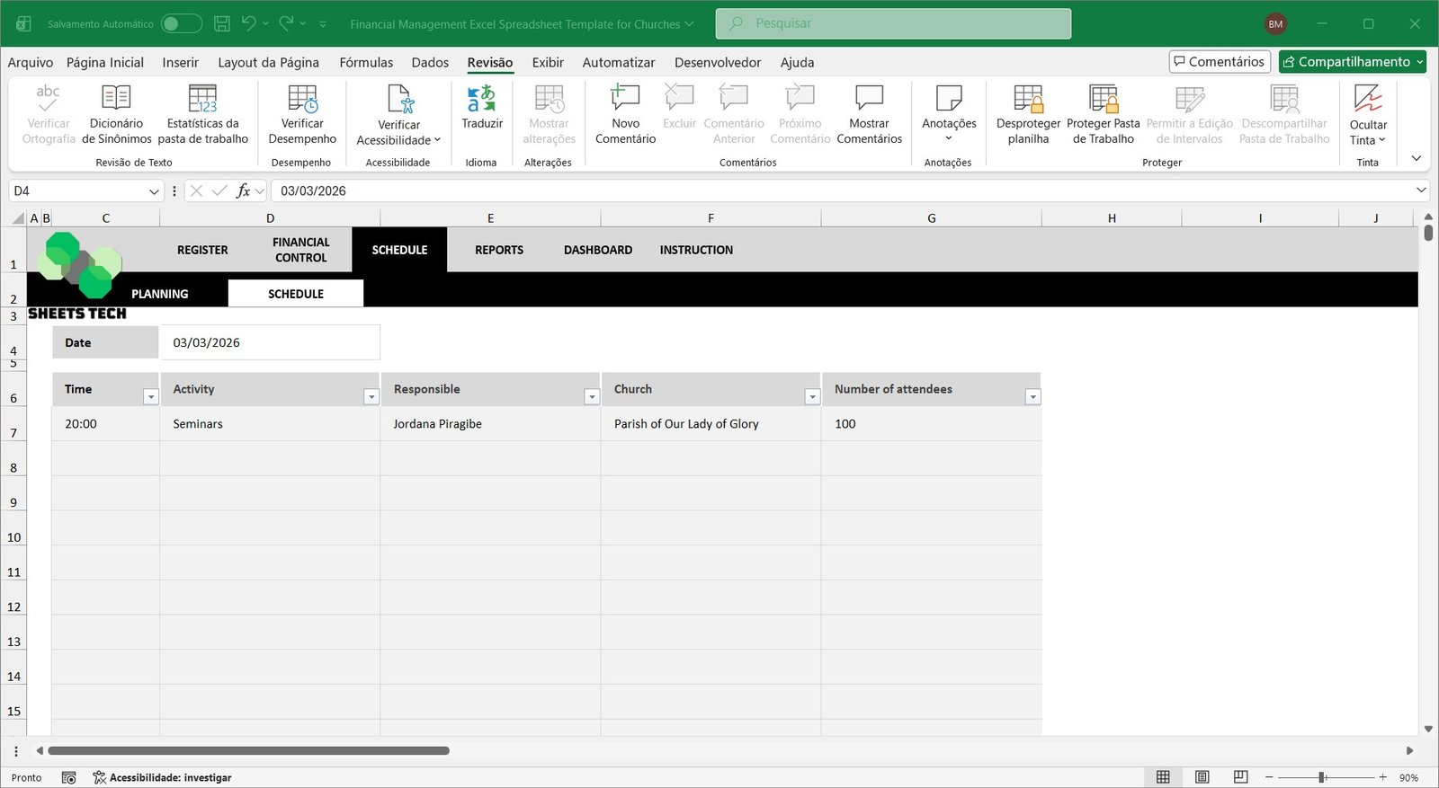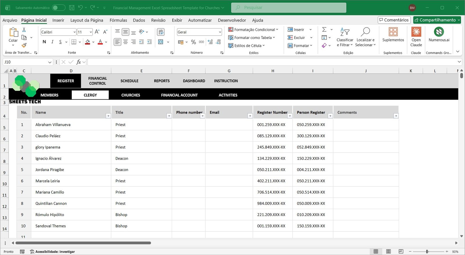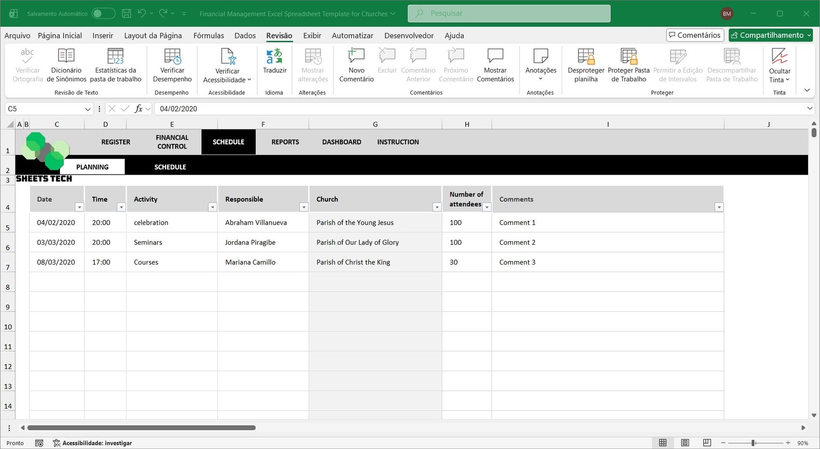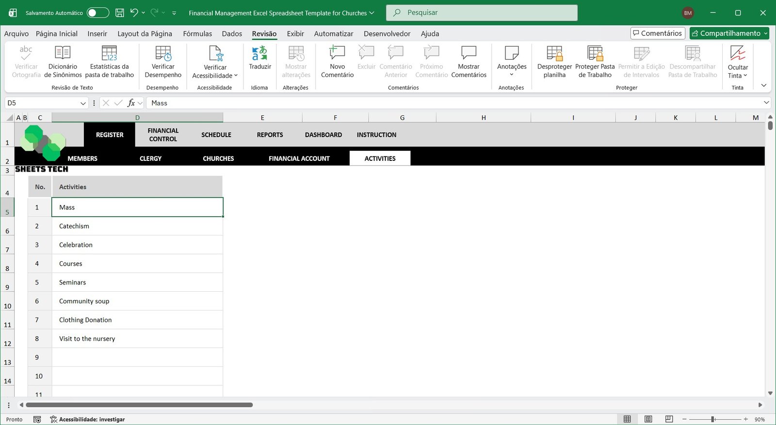 Church Financial Management Excel Spreadsheet Template