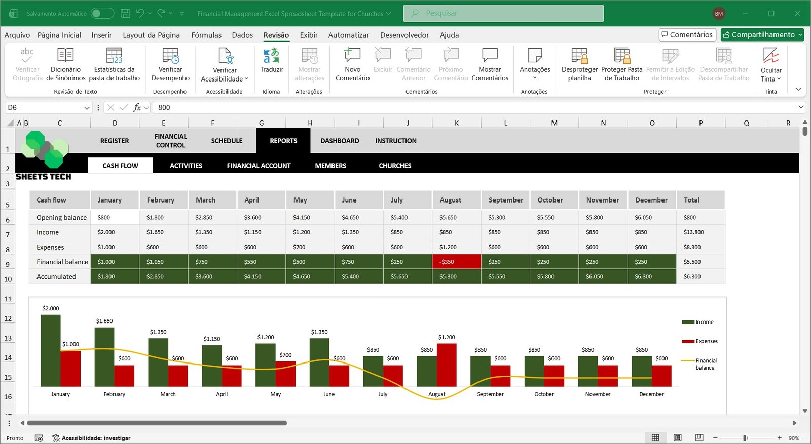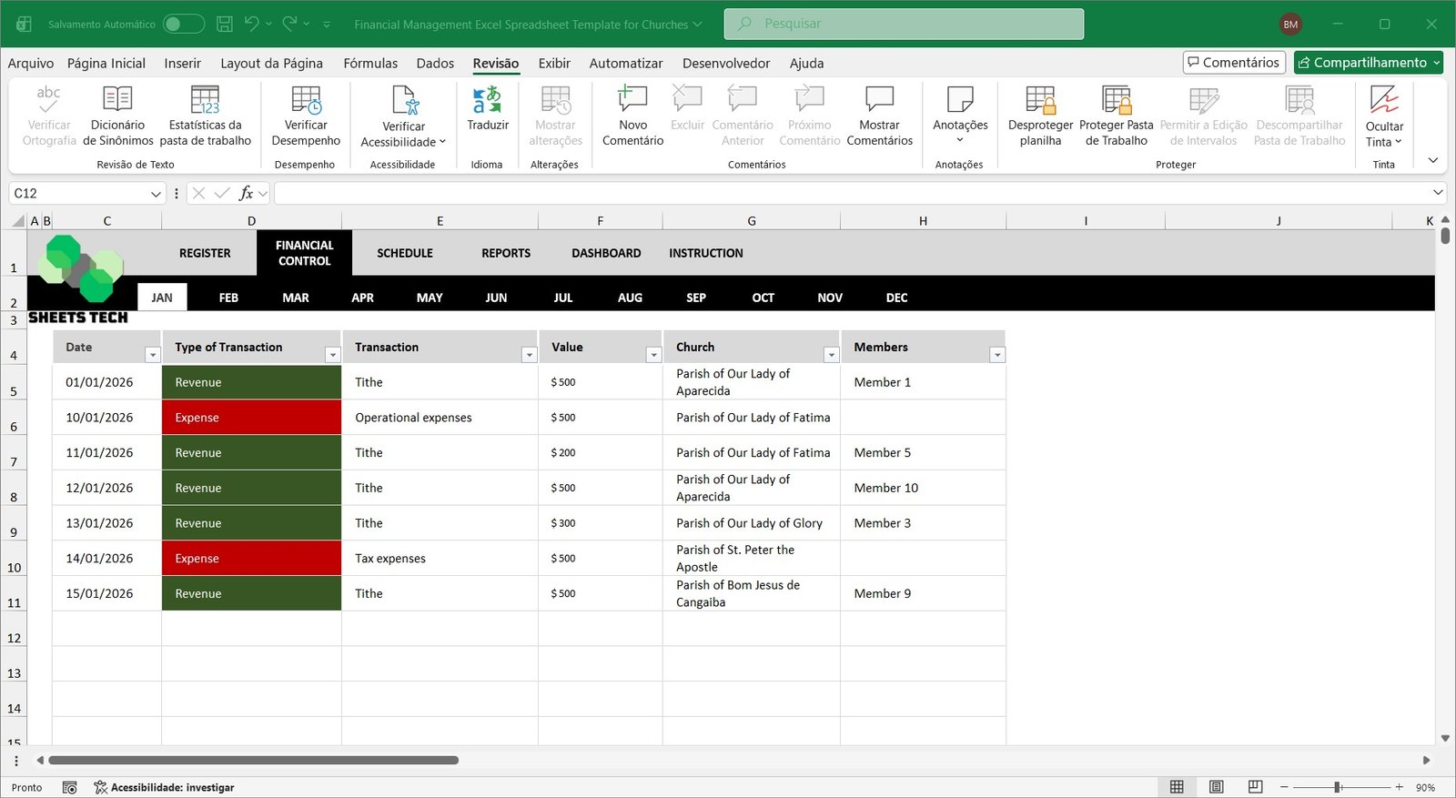 Control multiple churches and financial accounts in a single Church Accounting Template Excel file.