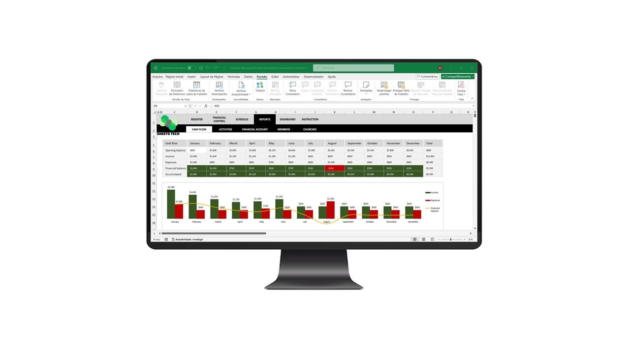 Monitor monthly financial performance with automatic Church Cash Flow Reports including tables and charts.